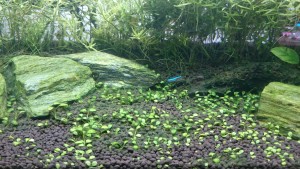 生体投入後、まぁまぁコケはとれた様子。といっても、石のコケとラン藻はまだまだ残っています。石の緑の部分はすべてコケです。